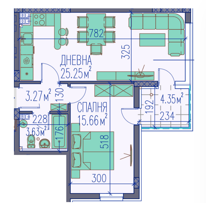 - Вид на имота: ДВУСТАЕН АПАРТАМЕНТ