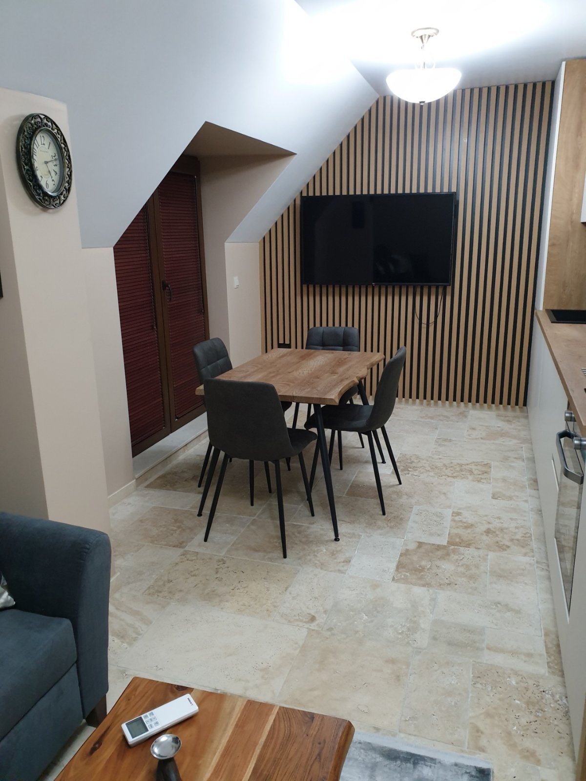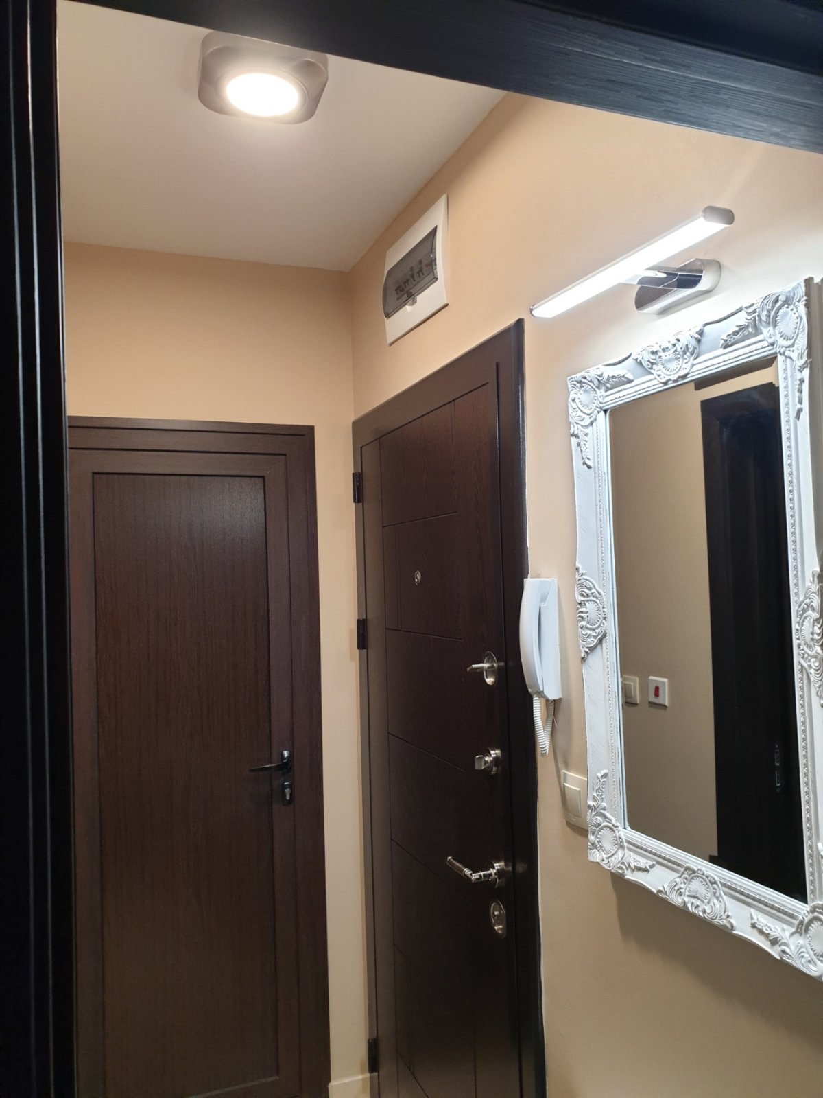 Жилището е завършено и обзаведено със стил и вкус, с висококачествени материали, разполага с всички електроуреди необходими за едно домакинство/пералня, съдомиялна, фурна, вграден котлон, микровълнова печка, кафе машина, кетъл.